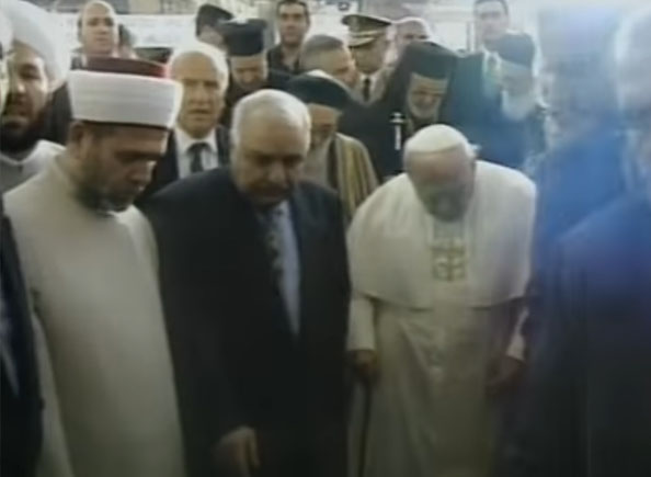 Vào ngày 6 tháng 5, 2001, Gioan Phaolô II đã đạt đỉnh điểm của sự bội đạo tích cóp nhiều năm với người Hồi giáo bằng cách công du và tham dự“Đại Giáo đường Umayyad” của Damascus. Khi trong giáo đường, Gioan Phaolô II thực sự đã cởi giày vì sự tôn kính dành cho ngôi đền vô đạo này.